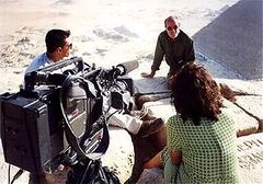 | + | [[Bild:Bauval_2.jpg|thumb|left|240px|'''Abb. 2''' Robert Bauval wird im November 1999 von Diana Lucas von Carte Blanche, (M-Net TV aus Südafrika) für die Doku- mentation 'A Golden Capstone for the Pyramid' interviewt.]] | ||