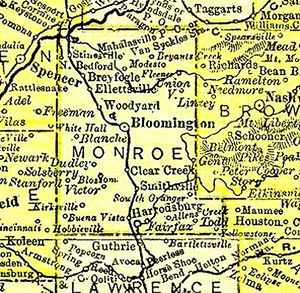 | − | + | [[Bild:Indiana Riesen 11.jpg|thumb|'''Abb. 11''' Diese alte Land- karte zeigt den Monroe County, Indiana, im Jahr 1895. Auch hier wurden die Knochen riesenhafter Men- schen entdeckt.]] | |