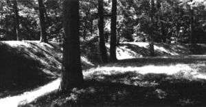 1882 hatte E. Tucker in seiner Geschichte des Landkreises Randolph bemerkt, dass es dort viele Mounds mit ungewöhnlichen Relikten und Antiquitäten gibt, von denen er einige beschreibt: "Einer der am besten bekannten kann (teilweise) [...] nordwestlich von Winchester besichtigt werden. Es ist eine Anlage von 43 Acres [altes Flächenmaß, regional verschieden zwischen 2500 und 3600 m2] Land in der Form eines exakten Quadrats. Die Aufschüttung war zwischen sieben und zehn Fuß breit [und] hat ebenfalls einen Mound von fünfzehn Fuß Höhe im Zentrum des Areals. Die gesamte Einfriedung und auch die Aufschüttung war, als sie von den Siedlern aufgefunden wurde, mit großen Wald-Bäumen bedeckt, genau wie die Gebiete in der Umgebung.
