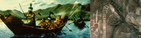 Möglicherweise gab es im Verlauf der Jahrtausende die von Prahl vermuteten transatlantische Migrationen von Westen nach Osten u n d andere, die vice versa verliefen. Frank Joseph vertrat z.B. 1998 in "Atlantis in Wisconsin" die Auffassung, dass etwa 5000 v.d.G. Prä- oder Proto-Guanchen die Kanarischen Inseln verließen, um später eine vergessene Frühkultur am Rock Lake in Wisconsin zu begründen. Als atlantologisches 'missing link' zwischen kanarischer und nord-amerikanischer Urgeschichte betrachtet er das ausgestorbene Volk der Chumash (Abb. 2, links), dessen Siedlungen sich schon um etwa 2950 v.d.G. in der Gegend des heutigen Santa Barbara, Kalifornien, nachweisen lassen. (Vergl. dazu: Indigenes Amerika - Erinnerungen an Atlantis von Frank Joseph)