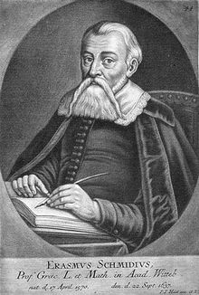 - ↑ Qulle: Wikipedia - Die freie Enzyklopädie, unter: "Erasmus Schmidt (Philologe)" (abgerufen: 24. März 2017)