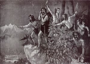 By (C) are designated migrations of less sophisticated, more war-like tribes from the Indian subcontinent, speaking Sanskritrelated languages. These tribes may have been forcibly expelled from India by the advanced civilization there. Perhaps the legendary tradition of Parashu-Rama (fig. 6), "Rama with the Battle-ax", an "avatar" or divine incarnation (not to be confused with the Rama of the Ramayana epic, another "avatar"), refers to such an event. He is said to have expelled war-like races from India.
