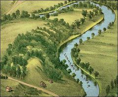 "Grabhügel sind im Staat sehr zahlreich und es gibt nur wenige Countys, in denen nicht eine größere oder kleinere Anzahl von Tumuli existiert. Das bemerkenswerteste [Exemplar] dieser Klasse war ein von John SB Matson im Hardin County geöffneter Mound, in dem über 300 Skelette gefunden wurden. Einige Altertumsforscher glauben jedoch, dass es sich nicht nur um Überreste von Moundbauern handelt, sondern [auch] um viele Indianer, da bekannt ist, dass Letztere ihre Toten oft in diesen Monumenten ihrer Vorgänger beerdigten.