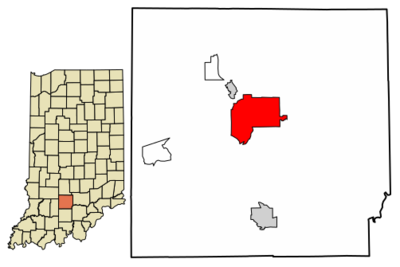 Abb. 1 Die geographische Lage der Township Bedford im Lawrence County und dessen Position im US-Bundesstaat Indiana