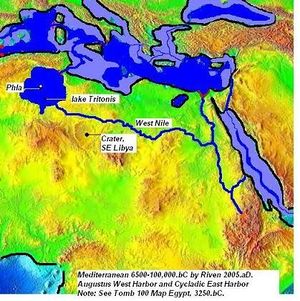 [[Bild:Lake Tritonis West Nile.JPG|thumb|'''Abb. 2''' Versuch einer Rekonstruktion des/der Tritonis-See/s (Lake Tritonis) mit einem putativen, westlichen Arm des Flusses Nil (nach: aejor mn).]]