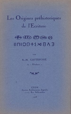 - ↑ Siehe: R.-M. Gattefossé, "Les Origines Préhistoriques de Ecriture", Anciens Etablissements Legendre (Lyon), 1925