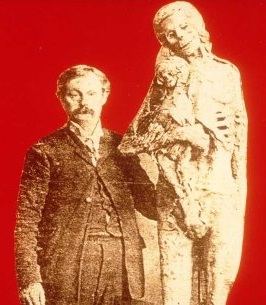 Letztlich ergeben sich nur zwei plausible Möglichkeiten: Entweder die gesamte Story vom Fund der Bridlevale Falls Mumie ist eine 'Presseente', deren Erfinder sich an den Martindale Mumien orientierte, oder aber die hier gezeigte Fotographie wurde damals willkürlich dem Bericht über den angeblichen Fund von 1895 als Illustration hinzugefügt, wobei sich auch die Frage stellt, wer die nebenstehend abgebildete Person war. Leider ist uns derzeit nicht bekannt, wo genau die betreffende Pressemelduung damals erschienen ist. - ↑ Red. Anmerkung: Vergleiche zu diesem Fund der Gebrüder Cowden von 1898 auch die Entdeckung der beiden Fachwissenschaftler Elias Howard Sellards und Oliver Perry Hay, die 1917 im Süden der USA ebenfalls auf riesenhafte Skelette 'primitiver' Menschen stießen, welche sie aus einer mehr als 100.000 Jahre alten Schicht bargen. Siehe: "Riesenfunde - in Florida" (bb)