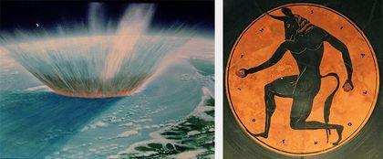 Abb. 1 Nach A. und E. Tollmann löste der Sintflut-Impakt ein Jahrtausende währendes Menschheits-Trauma aus, das nicht zuletzt zur Entwicklung grausamer Religionen und Kulte, wie z.B. dem Stierkult im minoischen Kreta führte.