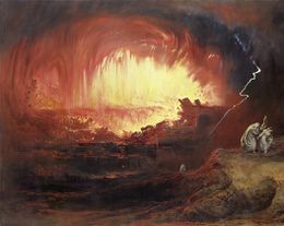 Abb. 2 Neben der Sintflut wurde der Untergang von Atlantis von bibeltreuen Exegeten oft auch mit der Vernichtung der Städte Sodom und Gomorra in Verbindung gebracht. (Bild: The Destruction Of Sodom And Gomorrah, Gemälde von John Martin, 19. Jahrhundert)