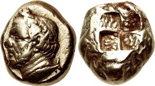 - ↑ Quelle: H. Moesta & P.R. Franke, "Antike Metallurgie und Münzprägung: Ein Beitrag zur Technikgeschichte", Springer-Verlag, November 2013, S. 131