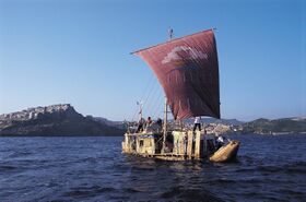 We embarked on our first major expedition into the unknown more than 26 years ago with ABORA I. From Alghero, the raft sailed via Porto Torres and Castelsardo to Santa Teresa de Gallura, before crossing over to the neighboring island of Corsica. Although ABORA I wasn't yet fully rigged, the leeboards allowed us to sail up to 90° across the wind. Without this capability, ABORA I would not have been able to complete the 650 km navigation route to Piombino, east of Elba! //