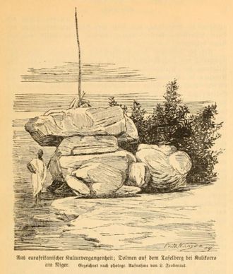 Es gab eine Zeit- und Kulturperiode, wo die Menschen gewaltige Felsmassen auftürmten oder aneinanderreihten. Dolmen (Abb. 1) und Steinkreise fanden ihre Verbeitung am Westrande Europas von Norwegen her über England, Westdeutschland, Frankreich bis nach Afrika. Ich fand ihre Ausläufer in den Nigerländern und sogar in schöner Erhaltung noch im westafrikanischen Urwaldstreifen Liberias (Abb. 2). Man prägte seinerzeit das Wort "Eurasien" und sprach von eurasischer Kultur als Zusammenfassung von europäischen und asiatischen Eigenarten und Äußerungsformen. Europa ward hierbei als Halbinsel Asiens aufgefaßt und ist oftmals in seiner kulturgeschichtlichen Abhängigkeit von diesem Mutterboden aller jüngeren Kultur behandelt worden.