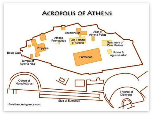 Ein weiteres bemerkenswertes Merkmal des Gebäudes ist, dass seine Breite sorgfältig auf 101,34 Fuß gemessen wurde, was genau einer Sekunde des Breitengrads am Äquator entspricht [2]. Die Akropolis von Athen ist die bekannteste und wird zu Unrecht oft als "Die Akropolis" schlechthin bezeichnet. Es ist erwähnenswert, dass sich die allgemeine Darstellung einer Akropolis in Platos Beschreibung der zentralen Gebäude des Akropolis-Plans von Atlantis widerspiegelt, welche sich ebenfalls auf einer Anhöhe befanden.