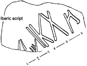Der zweite Stein wurde auf einer Petroglyphen-Fundstätte im südlichen Zentral-Alabama entdeckt. Dieser Stein zeigt augenscheinlich ein Durcheinander von an Kratzern oder Furchen auf beiden Seiten, dass man leicht auch auf Pflug-Spuren zurückführen könnte. Barry Fell hält sie jedenfalls für eindeutig [alt-]iberische Buchstaben. Seine Übersetzung aus dem Arabischen: