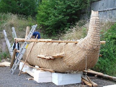 Um eine künftige ABORA IV-Mission noch professioneller vorzubereiten, braucht es nicht nur ein funktionstüchtiges Schiff, sondern auch eine gut ausgebildete Crew. Und genau aus diesem Grund baute das ABORA-Team aus Holz, viel Polystyrol sowie jeder Menge Seilen und Schilf eine sechs Meter lange Funktionsreplik (Abb. 4), um Anwärter für künftige Expeditionen noch besser im Umgang mit derartigen Booten schulen zu können. Die Zeit der unmittelbaren Expeditions-Vorbereitung hatte sich zuvor stets als zu kurz erwiesen. Zudem gibt es leider weltweit keine Segelschule, in der man den Umgang mit vorzeitlicher Seitenschwert-Segeltechnik erlernen und anwenden könnte.