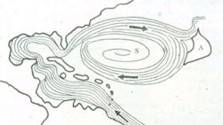 Dieser Stromwirbel bildet den Lebensraum der Aale vor der enddiluvialen Erdumwälzung, die ihn mit dem Untergang der Sperrinsel beendete. An diesen ihren Lebensraum waren damals die Aale in ihrer Lebensweise angepaßt. Sie brauchten nichts anderes zu tun, als sich dem Golfstromwirbel anzuvertrauen und sich von ihm treiben zu lassen. Er trug sie aus Salz- und Süßwasser und umgekehrt vom Süßwasser wieder zurück ins Meer.