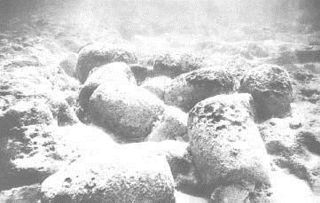 (bb) Zu den "Sensationsfunden", die immer wieder in der atlantologisch interessierten Kreisen herumgeisterten, gehören die so genannten 'Säulen von Atlantis'. Dabei handelt es sich um zylindrische, an Säulenelemente erinnernde, Körper, die, gemeinsam mit Marmorblöcken vor 'Entrance Point' bei Bimini entdeckt wurden. Uber diese Anomalien berichtete W. Harrison 1971 in einem Artikel der Zeitschrift Nature. [1]