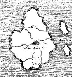 (1) Atlantiskarte des Athanasius Kircher (Bildausschnitt; Bearbeitung durch die Red.); Bildarchiv Atlantisforschung.de