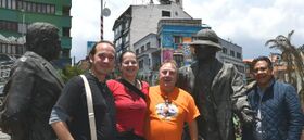 The exploration team at a glance (from left to right): Ramon, Annika, Dominique and Gustavo. We are standing in front of the memorial to Arthur Posnansky (1873-1946), who was instrumental in promoting research into the archaeological site of Tiahuanaco and thus bringing it to the public's attention.Durch Zufall buchte Gustavo unser erstes Hotel am Tiahuanaco-Platz, wo nicht nur das Denkmal, sondern auch das ehemalige Wohnhaus von Posnansky steht. Er trug wesentlich dazu bei, dass in Tiahuanaco die ersten wissenschaftlichen Ausgrabungen stattfanden. Er war ein Verfechter der rassischen Anthropologie, was ihn nach dem 2. Weltkrieg viel Kritik einbrachte. //