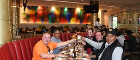 The ride almost vertical to El Alto. Bolivian artists have colorfully painted a block of houses directly in front of El Alto. For the tourists, of course, the photo opportunity!Nach der Rundtour wurden bei einem deftigen Essen weitere Pläne für diese Woche geschmiedet, um die neue Expedition bestens vorzubereiten. Erstmals mit in der Runde ist unser Bootsbauer Fermin, der alle ABORA-Schiffe außer ABORA I mit uns baute. //