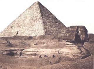 Hartnäckig wird auch gestritten, ob Wasser oder Wind für die extrem starke Verwitterung verantwortlich war. Da vor 8000 bis 7000 Jahren eine Trockenperiode begann, hätten die Bauwerke im Falle einer Wassererosion ihre Schäden bereits in der vorausgegangenen Feuchtphase erlitten. Auch wenn vielen Ägyptologen die Vorstellung von 10 000 Jahren alten Tempeln geradezu ungeheuerlich erscheinen mag, so sollte es eigentlich zu denken geben, dass Spezialisten wie Prof. Dr. Robert Schoch, J. Anthony West und andere kompetente Wissenschaftler ganz entschieden für eine Wassererosion plädieren. Vor allem sollten wir nicht den Sphinx in seinem heutigen stark restaurierten Zustand betrachten, sondern unrestauriert, wie ihn Fotografien aus dem 19. Jahrhundert zeigen. Beispielsweise auf dem obigen Foto (Abb. 1) aus dem Jahre 1858.