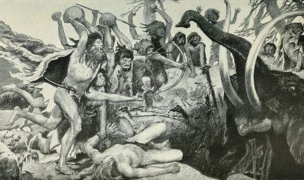 Abb. 1 Leider prägt noch immer die Vorstellung halbnackter, lediglich mit kruden Fellfetzen bekleideter 'Primitiver' das gängige Bild der Menschen des Paläolithikums.