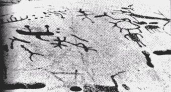 In Übereinstimmung damit kennen die Chippewa (Abb. 3) einen identischen Bericht über einen weißhäutigen Stamm, der in ferner Vergangenheit ausgelöscht worden sei. [16] Als man ihm eine Kupfer-Axt zeigte, die im späten achtzehnten Jahrhundert aus einem Mound ausgegraben wurde, antwortete einer der Chippewa-Ältesten: >Weiße Männer haben sie vor langer Zeit gemacht, lang ist´s her.< [17] [...] Einige ihrer Familien bewahren", wie Pater Claude Allouez, bemerkte, der 1860 bei den Chippewa lebte, Kupfer-Gegenstände >aus einer vergessenen Zeit auf, die als Haus-Gottheiten verehrt werden<." [18]