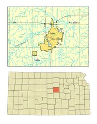 Abb. 6 Oben: Karte von Salina; unten: Lage des Salina County in Kansas