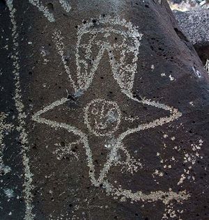 - ↑ Editorial remark: see Schaafsma, Polly, "Indian Rock Art of the Southwest", School of American Research, Santa Fe. Albuquerque: University of New Mexico Press, 1980