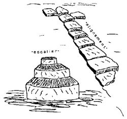 William R. Corliss, ein renommierter Anomalist aus den USA, wies schließlich 1988 auf eine Veröffentlichung in der alternativ-archäologischen Zeitschrift Kadath [7] aus Belgien hin, die im Vorjahr unter dem Titel "LANZAROTE: UN NOUVEAU BIMINI?" erschienen war: "Auch hier findet man eine untergegangene, der Bimini [Road]-ähnliche, Reihe aus offenbar von Menschen gemachten Steinblöcken. Etwa 22 Meter tief, sind die Blöcke in einer Art Treppenaufgang arrangiert, wie in der Abbildung gezeigt. (Abb. 2) Die Stufen sind jedenfalls 40 cm hoch, ein zu großer Schritt für einen Menschen. Ist diese Struktur ein überflutetes Pier, ein Altar, oder etwas anderes. Niemand weiß es. Möglicherweise relevant ist eine dem Stil nach olmekische Statuette, die ebenfalls in Lanzarotes Gewässern gefunden wurde." [8]